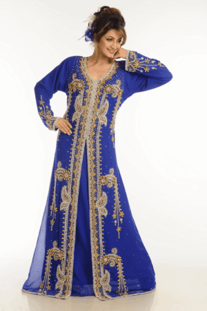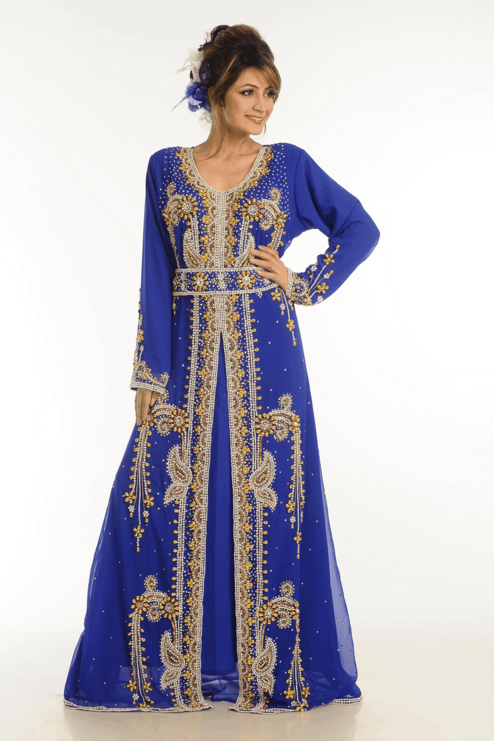 Blue Georgette Hand Embroidery Party Wear Kaftan
