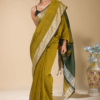 Brown And Silver Batik Printed Hnadloom Cotton Saree With Unstitched Blouse