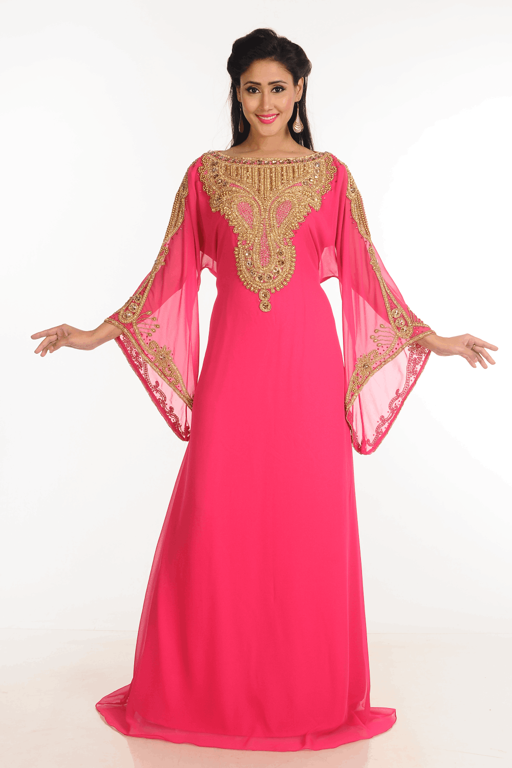 Islamic Party Wear Kaftan in Pink Georgette – Hand Embroidered Abaya Style Dress