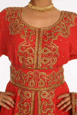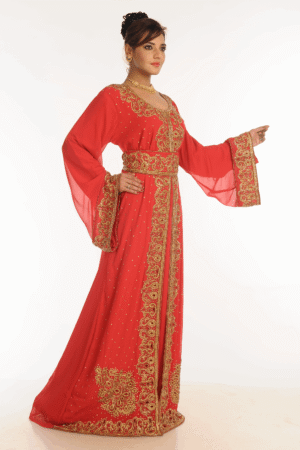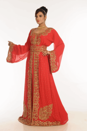 Be the first to review “Radiant Red Hand Embroidered Kaftan In Moroccan Cut – Georgette Fabric Festive Attire” Cancel reply